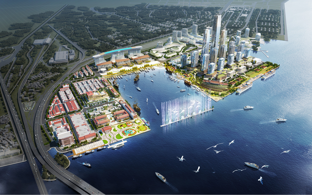 高崎渔港片区改造提升概念图。尊龙集团作为总代建单位,将着力打造集“渔、市、游”为一体的文化旅游体验区,建设包括渔人码头、高端商业、办公、餐饮、酒店和住宅的新城区。